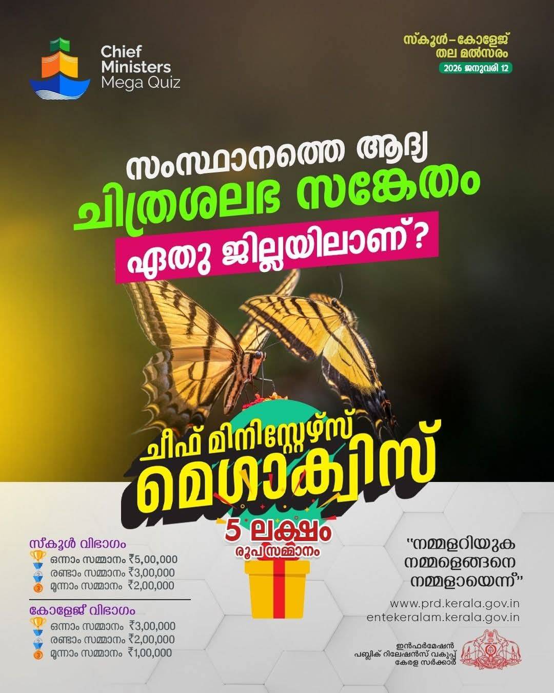 ചീഫ് മിനിസ്റ്റേഴ്സ് മെഗാക്വിസ് മത്സരം വരുന്നു.