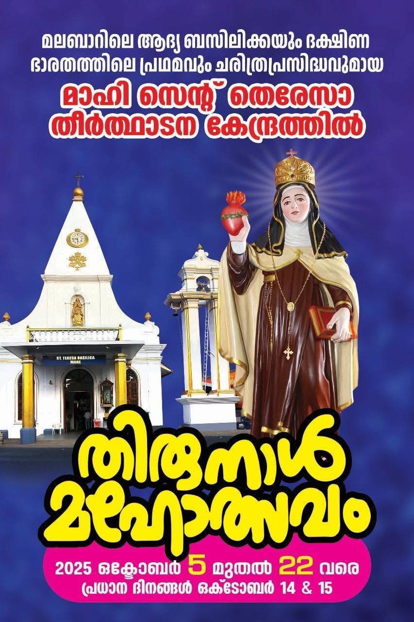 2025 ലെ മാഹി ബസിലിക്കയിൽ തിരുന്നാൾ മഹോത്സവം. ഒക്ടോബർ 5 മുതൽ 22 വരെ നടക്കും. ഏവർക്കും സ്വാഗതം.
